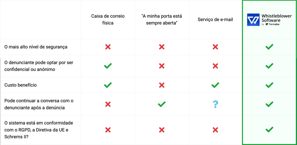 • Alta transparência do que está a acontecer para o denunciante durante toda a sua jornada