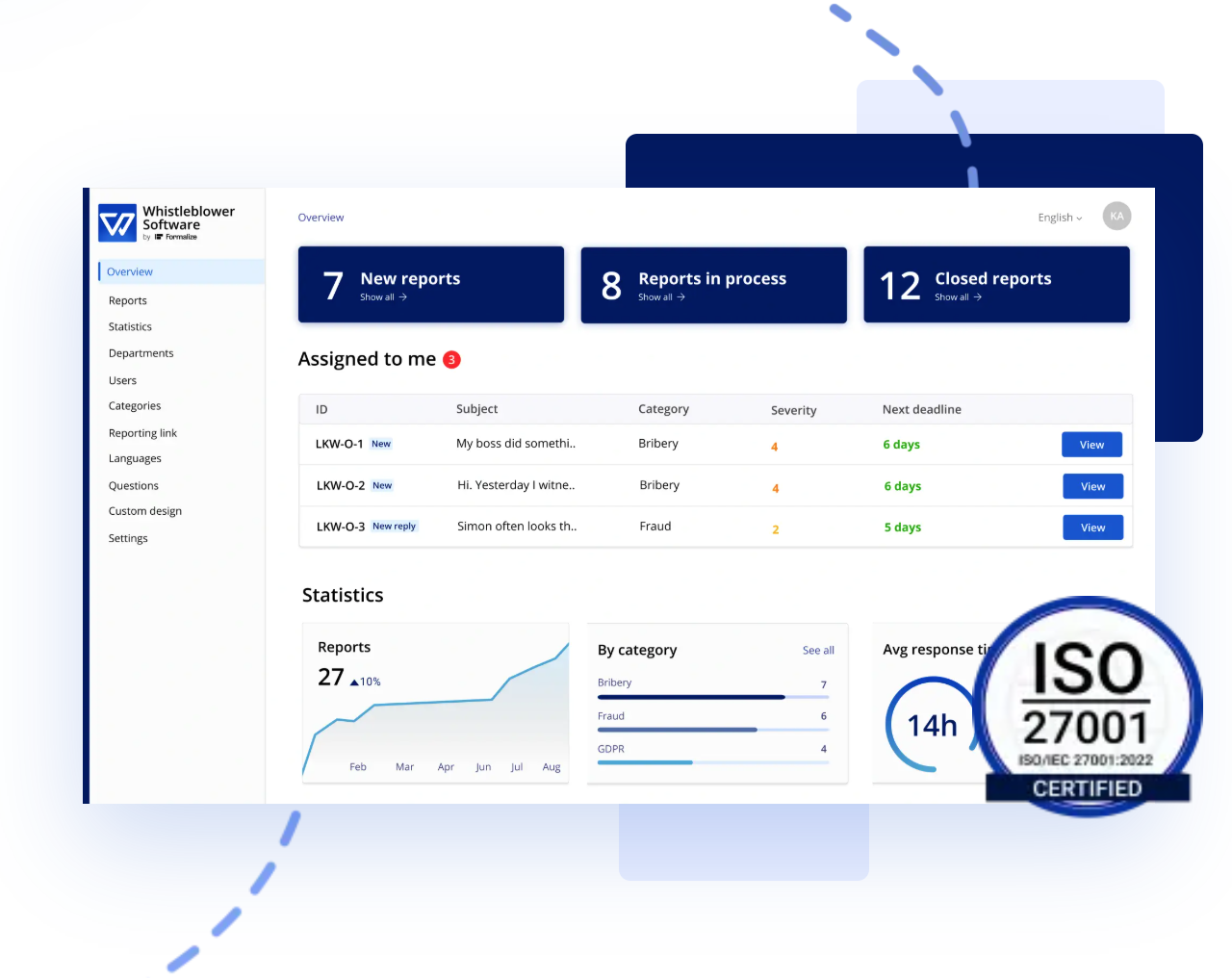 A Whistleblower Software by Formalize conta com a confiança de algumas das maiores sociedades de advogados e empresas de auditoria na UE, porque a nossa solução oferece um nível de compliance e segurança inigualável.